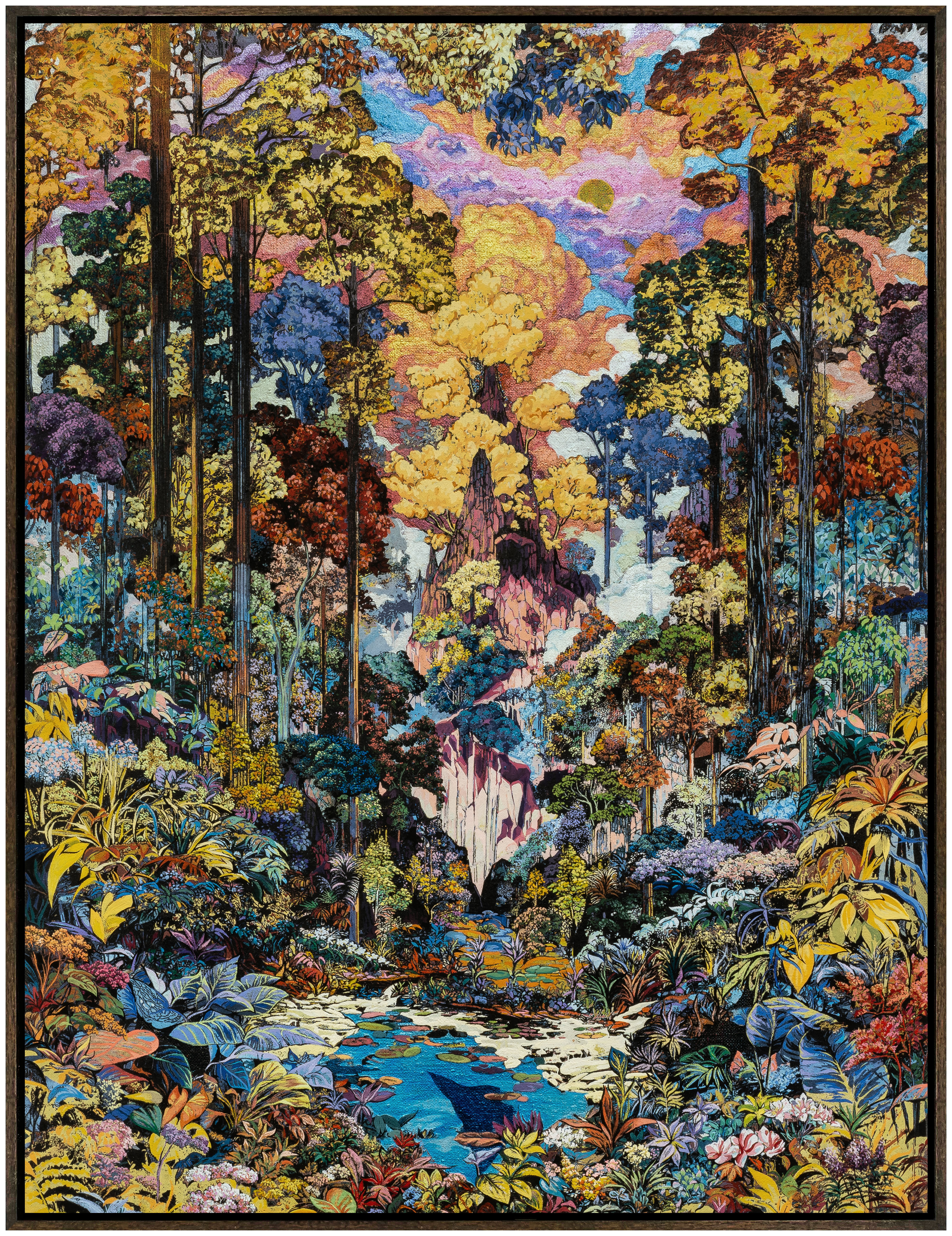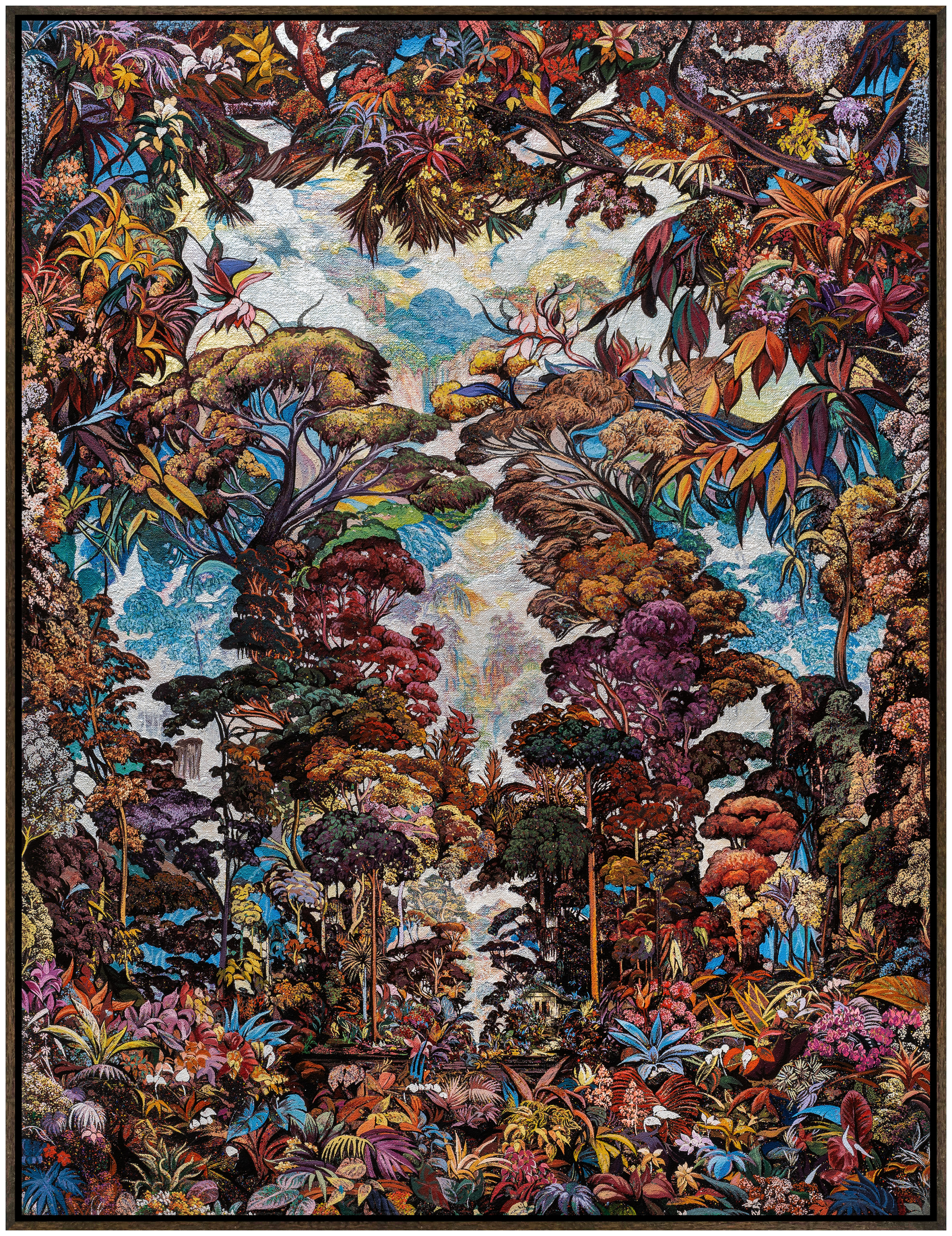 Santiago Giralda’s (b.1980, Madrid, Spain) paintings draw from art history and notably landscape painting, while also incorporating new technologies and viewpoints derived from our increasingly digitalised world. The artist begins his working process by photographing different places in cities in order to observe how the urban context has transformed and adapted the natural landscape. He composes images on the computer and then edits these by interspersing them with additional material he finds online, thus melding the seen, personal memory with those drawn from outside sources. he result plays with the collective unconscious - the notion that we have a collective memory bank populated by instincts as well as universal symbols - archetypal images such as the shadow, the tower, water and the tree of life. According to Jung, the collective unconscious has a profound affect on our lives, we live out its symbols and clothe them in meaning through our experiences and add to them from the likes of popular films, memorable news footage, remarkable global events and such like.